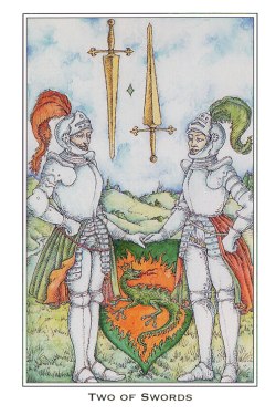 The 2 is an assignment number in tarot, and in this case of the 2 of Swords, it's about being forced to wait for something, often even while blindfolded in some sense.