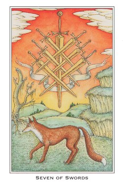 The 7 of Swords is about making slow progress because you can't trust the situation and/or people around you.