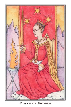The Queen of Swords makes you aware of what you can do with alertness, objectivity, diplomacy, and your own intelligence. She will teach you how to approach your goals while also guarding yourself against dangers.