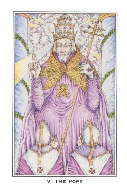 Where The Emperor is the chief of worldly power, The Hierophant is the head of spiritual matters.