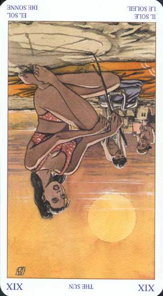 With The Sun the third and final cycle of Tarot is commenced. The first cycle was the upperworld or childphase, a place to start and gain inputs. Here you gained wisdoms, knowledge and ideas. The second cycle was the underworld or adult phase or assignments phase, the hard cycle where you had to really work for gains. This third cycle that starts at The Sun, is the phase of rewards, of enjoyment of results.