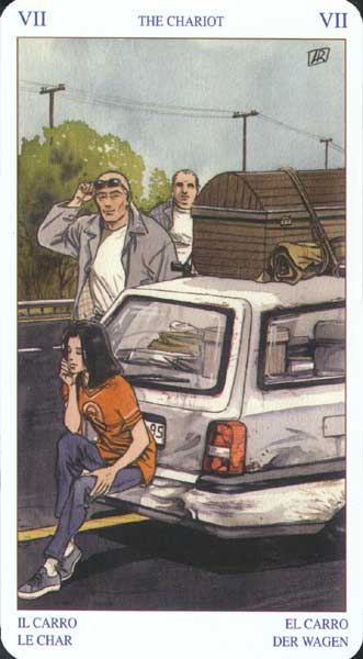 During the prevous card, The Lovers, all the wisdom of the first cards in the deck has been processed and a choice was made for personal growth. Now it's time to do something with all this baggage, to actually travel the road. A lot has been done so far, wisdoms have been accumulated and integrated into one's personality.