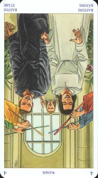 The number and element of this card (4=structure, element=fire) are in sync because fire can use the stability of structure, and structure can use the liveliness of fire. Here the structure of 4 doesn't cause stagnation.