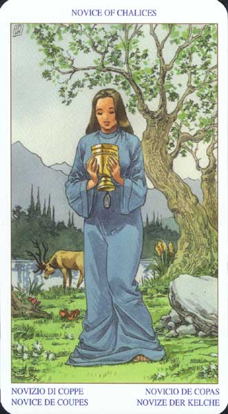 When this card falls, it might serve to point your attention to whatever is new and fresh in your life; a new job, study, love relation, business relation, project, etc. Look to the other cards in the reading to see what more can be said about it.