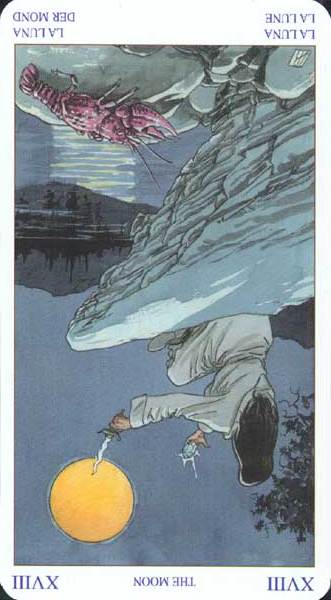 The Hermit, also a 9, closed off the upperworld. The Moon closes the underworld.