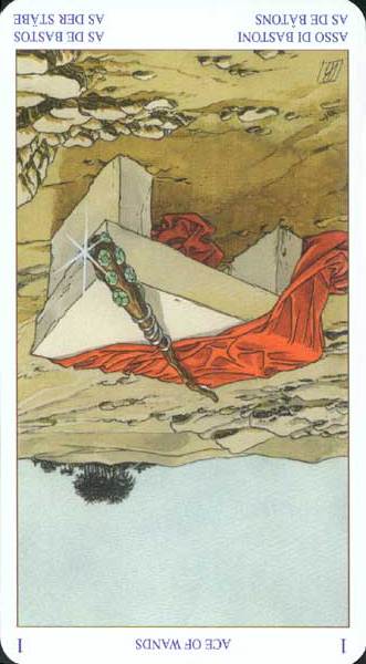 The ace of wands represents the beginning of an idea. The element fire and the number 1 give a powerful combination: enterprise and new beginnings apply to both. This is an energetic combination, which is why the card is generally considered a positive one. Spring is the season associated with this card.