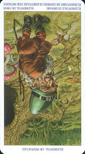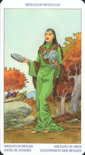 Pages explore and gather information about the road ahead, with an almost naive attitude. The Page of Pentacles is sometimes described as a bridge builder; Pentacles is the suit where the actual work is done, and the Page here enables those that follow to quickly cross difficult terrain.