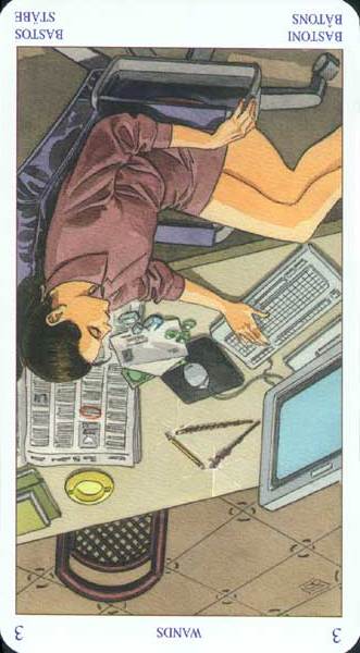 This card is about exposing your new ideas to the world. The Wand's element fire goes well with the number 3, as 3 is an output number, a number of results. Fire likes getting to results quickly.