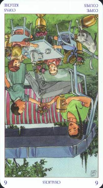 The 6 of Cups is about having confidence in something. It is the number of security and harmony. In the suit of Cups this means to be in harmony with yourself.