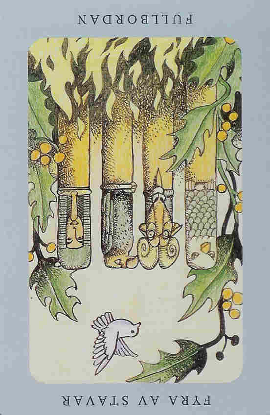 The number and element of this card (4=structure, element=fire) are in sync because fire can use the stability of structure, and structure can use the liveliness of fire. Here the structure of 4 doesn't cause stagnation.