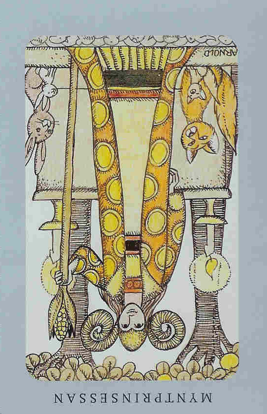 Pages explore and gather information about the road ahead, with an almost naive attitude. The Page of Pentacles is sometimes described as a bridge builder; Pentacles is the suit where the actual work is done, and the Page here enables those that follow to quickly cross difficult terrain.