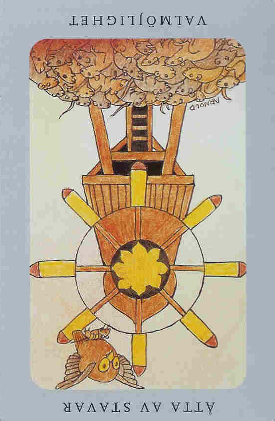 This card falls when you've completed all assignments, overcome all obstacles and are completely at peace with yourself due to your accomplishments. Yet Tarot wouldn't be Tarot if it didn't challenge you to enter entirely new worlds and start the process all over again.
