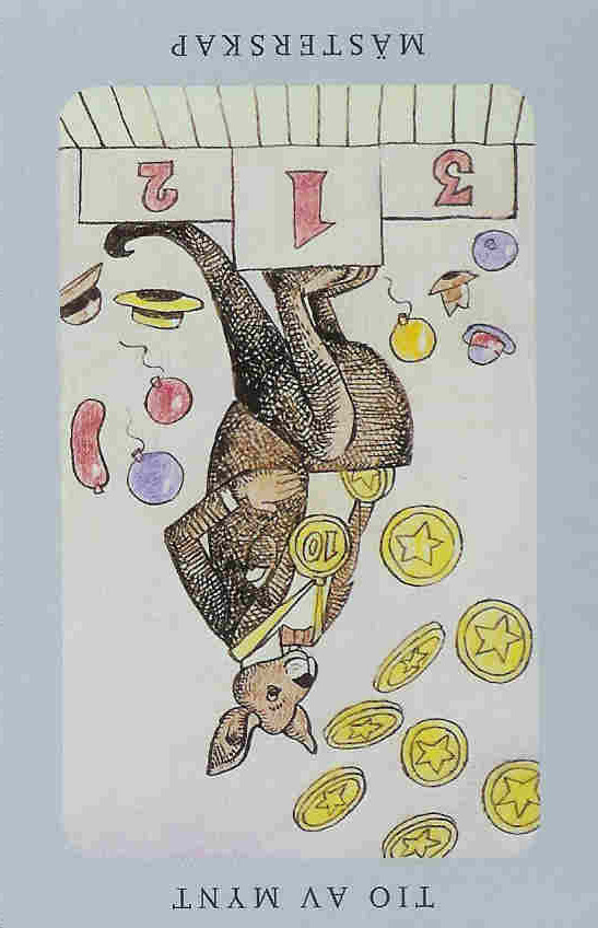 The 10 of Pentacles represents material posessions. The number 10 of Pentacles forms the links to the Ace (first card) of Wands (the first suit in the minor Arcana), and thus prepares to bring you back to the beginning of the minor Arcana, ready for a next cycle through the tarot.