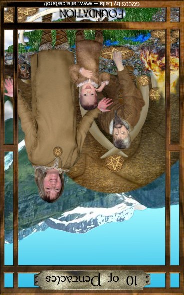 The 10 of Pentacles represents material posessions. The number 10 of Pentacles forms the links to the Ace (first card) of Wands (the first suit in the minor Arcana), and thus prepares to bring you back to the beginning of the minor Arcana, ready for a next cycle through the tarot.