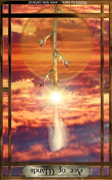 The ace of wands represents the beginning of an idea. The element fire and the number 1 give a powerful combination: enterprise and new beginnings apply to both. This is an energetic combination, which is why the card is generally considered a positive one. Spring is the season associated with this card.