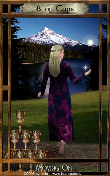 8 is an assignment number, and in the suit of Cups, it is about overcoming the urge to sink into depression caused by view on the long road ahead.