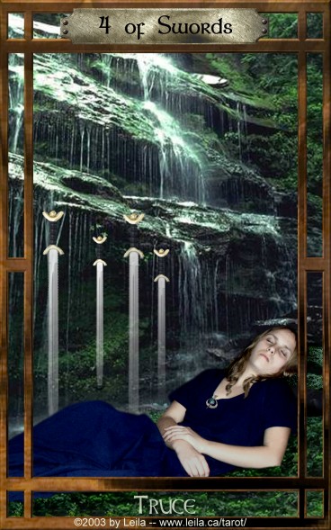 4 is the first number in the cycle of giving things shape. It's about making things real. The element of Swords also relates to making things real, so this enhances the effect so much that arrogance can cause you to exhaust yourself.