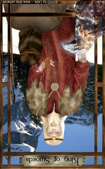 The King of Swords rules with diplomacy and a strong sense of responsibility, not just for himself but also for those around him, yet he is not afraid to make heavy decisions that compel him to eliminate dangers and dangerous opponents with some force.