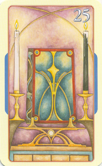 The Hermit shuts out the world and retreats into solitude to better understand some spiritual aspect of life. He opens to the cosmos and lets it's wisdom sink in. Hermits are often seen as wise old men who can guide a traveller along a journey.
