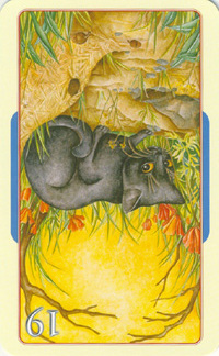 The number this card carries is 15, composed that is 6. The resemblances to the first '6' card (The Lovers) are remarkable; in both cards security is a central theme.