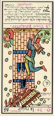 The card of The Tower goes by different names in different Tarot games. Some call it The Tower of Destruction, or The House of God, or Tower of the Light.