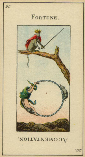 With the Wheel of Fortune, the second major cycle of Tarot commences. The first cycle in the first cards of the deck was about development as a child, accumulating wisdoms and integrating them into your personality. This second cycle is about your development as an adult. It is a more demanding cycle. You'll have to see if you can face what the world throws at you.