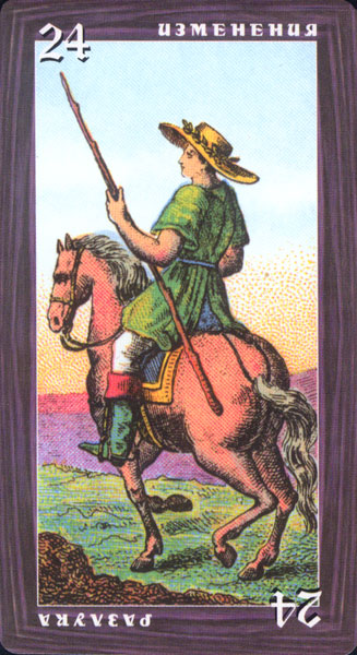 The person in the center of the card has completed many journeys already, and is completely at ease. Yet she continues to move, for having reached your goals is no reason to stop moving.