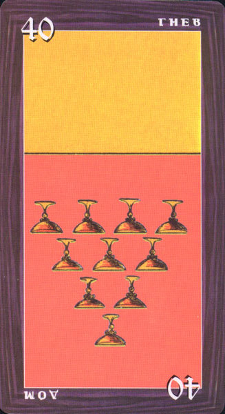 With the 4, the second cycle of this suit is commenced, where a choice between structure and feeling has to be made, where old securities have to be let go of to work towards a new future. But like Wands, Cups don't like structure much, they prefer to be free and dream rather than to make commitments and go for something.