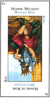 The King of Cups uses his intuition to achieve his ideals. Since Cups are turned inward, and Kings turned to the outside world, this card might be a difficult one, or it could be a powerful one.