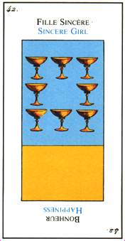 The King of Cups uses his intuition to achieve his ideals. Since Cups are turned inward, and Kings turned to the outside world, this card might be a difficult one, or it could be a powerful one.