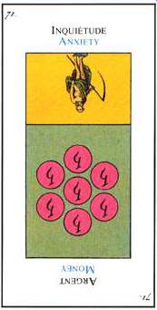 The 10 of Pentacles represents material posessions. The number 10 of Pentacles forms the links to the Ace (first card) of Wands (the first suit in the minor Arcana), and thus prepares to bring you back to the beginning of the minor Arcana, ready for a next cycle through the tarot.