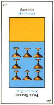 The 9 of Cups represents achievement and contentment. It is an excellent time to take some rest and enjoy yourself.