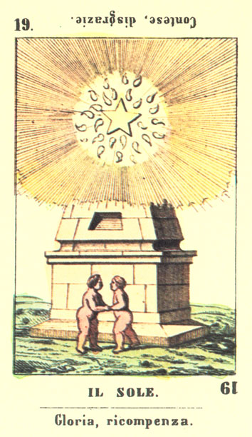 The Sun carries the number 19, a composed value of 1. This is the third composed 1 in the Major Arcana. It's the culmination of the 1's. The third 1 is a reward and a beginning at the same time. It also represents creative energy.