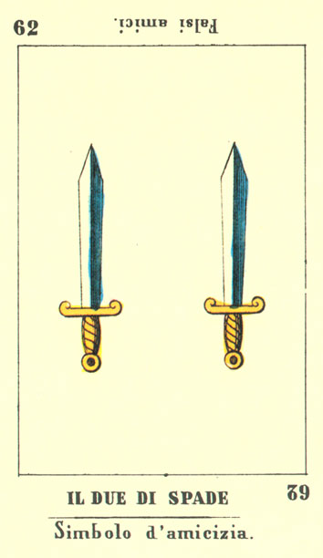 The number this card carries is 15, composed that is 6. The resemblances to the first '6' card (The Lovers) are remarkable; in both cards security is a central theme.