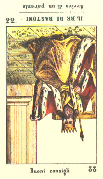 The King of Cups uses his intuition to achieve his ideals. Since Cups are turned inward, and Kings turned to the outside world, this card might be a difficult one, or it could be a powerful one.