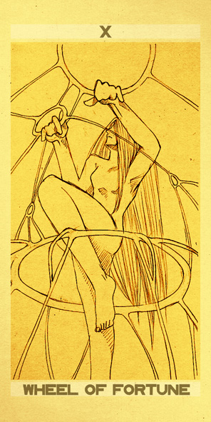 With the Wheel of Fortune, the second major cycle of Tarot commences. The first cycle in the first cards of the deck was about development as a child, accumulating wisdoms and integrating them into your personality. This second cycle is about your development as an adult. It is a more demanding cycle. You'll have to see if you can face what the world throws at you.