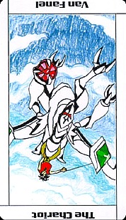 During the prevous card, The Lovers, all the wisdom of the first cards in the deck has been processed and a choice was made for personal growth. Now it's time to do something with all this baggage, to actually travel the road. A lot has been done so far, wisdoms have been accumulated and integrated into one's personality.