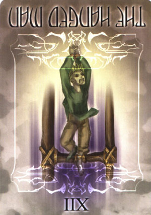 First you learned that you're not a plaything of fate, that you can make your own choices. Then you've learned how to fend for yourself and face yourself. Now, at The Hanged Man, you can learn to let go. You no longer have to cling to old values. You've found strength in yourself and by letting go, you allow growth.