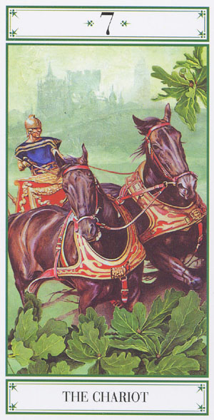 During the prevous card, The Lovers, all the wisdom of the first cards in the deck has been processed and a choice was made for personal growth. Now it's time to do something with all this baggage, to actually travel the road. A lot has been done so far, wisdoms have been accumulated and integrated into one's personality.