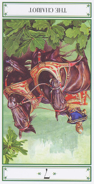 During the prevous card, The Lovers, all the wisdom of the first cards in the deck has been processed and a choice was made for personal growth. Now it's time to do something with all this baggage, to actually travel the road. A lot has been done so far, wisdoms have been accumulated and integrated into one's personality.