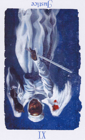 This card carries the number 11. In the Rider-Waite deck, Strength and Justice have swapped places because Waite saw links with the astrological signs Leo and Libra.