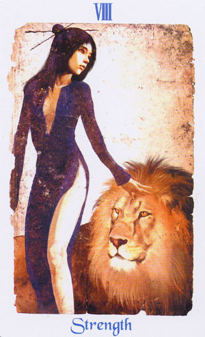 Strength is the second of the four midieval values. Justice, card 11, is the first, and the third, Temperance, is card 14.