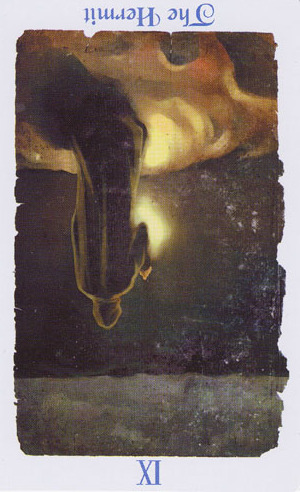 The Hermit carries the number 9. This is the highest base number. After 9 the composed numbers emerge. Therefore the number 9 is the gateway to a higher order. It is also a place to rest before embarking on the next leg of the journey.