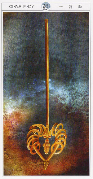 The ace of wands represents the beginning of an idea. The element fire and the number 1 give a powerful combination: enterprise and new beginnings apply to both. This is an energetic combination, which is why the card is generally considered a positive one. Spring is the season associated with this card.