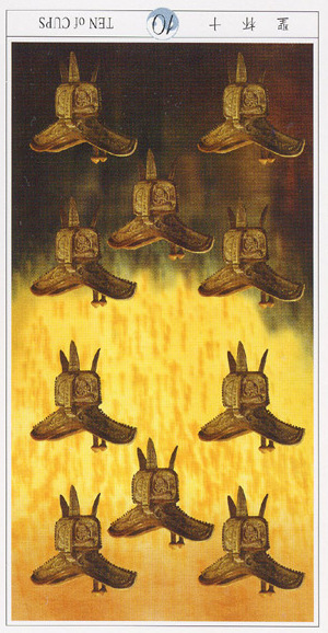 The 10 of Cups is the link to the Swords suit. It is time to leave your own emotions behind and face the world and the tasks ahead.
