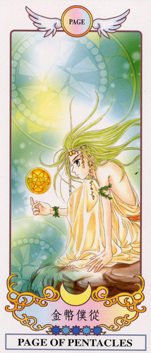 Pages explore and gather information about the road ahead, with an almost naive attitude. The Page of Pentacles is sometimes described as a bridge builder; Pentacles is the suit where the actual work is done, and the Page here enables those that follow to quickly cross difficult terrain.