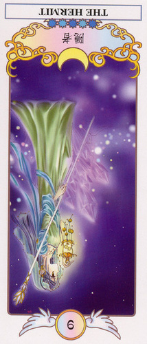The Hermit shuts out the world and retreats into solitude to better understand some spiritual aspect of life. He opens to the cosmos and lets it's wisdom sink in. Hermits are often seen as wise old men who can guide a traveller along a journey.