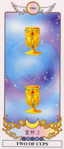 This the first assignment number of the Cups suit. Unlike Wands, with the Fire element, Cups, with the water element, has a lot more patience. Water is by nature more introspective, and this second card in the Cups suit is indeed about exploring yourself. The outcome is uncertain as always, but it usually results in better acceptance of yourself.