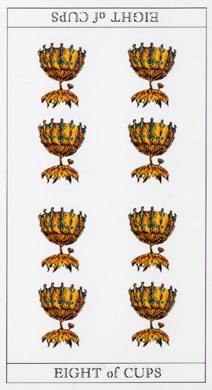 8 is an assignment number, and in the suit of Cups, it is about overcoming the urge to sink into depression caused by view on the long road ahead.