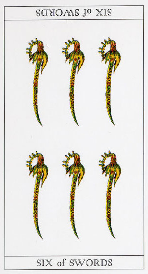 The 6 of Swords is a reward number after the hard assignment in 5 of Swords, it brings you to a safe place to rest a bit.